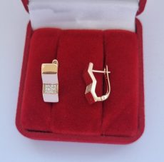 Paauksuoti auskarai iš medicininio metalo, nealergizuoja ir nesioksiduoja, inkrustuoti auskarai cirkonio akutė.
