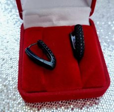 Pasidabruoti auskarai iš medicininio metalo nealergizuoja ir nesioksiduoja, inkrustuoti cirkoniais juodos spalvos, suteikia tiek žavesio. Tinka moterims .