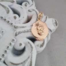 Paauksuotas apvalus Šv. pakabukas iš medicininio metalo.