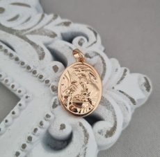 Paauksuotas apvalus Šv. pakabukas iš medicininio metalo. Puikiai nešiojasi ir nebijo vandens.