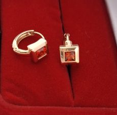 Paauksuoti auskarai iš medicininio metalo nealergizuoja ir nesioksiduoja, inkrustuoti cirkoniais raudonos spalvos.