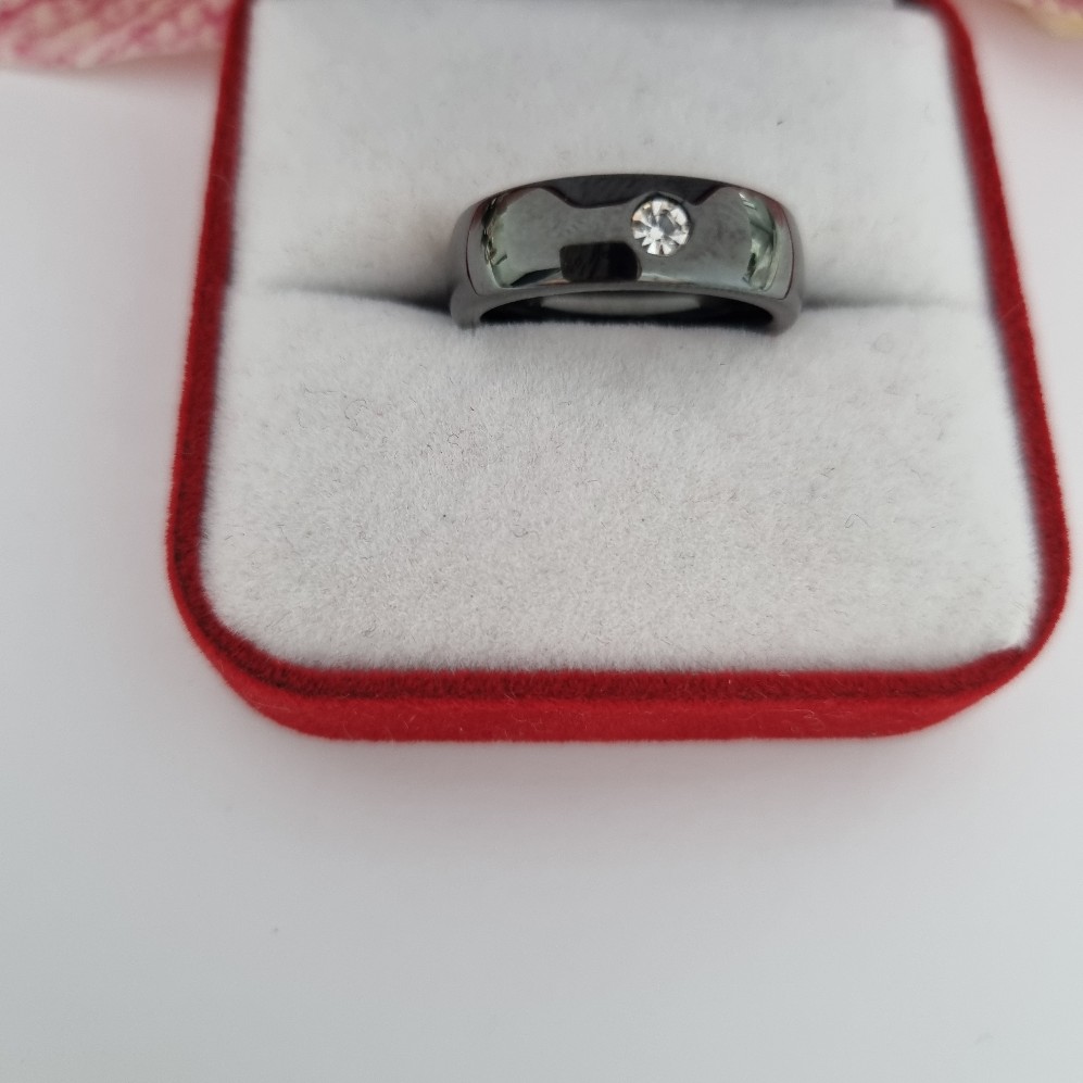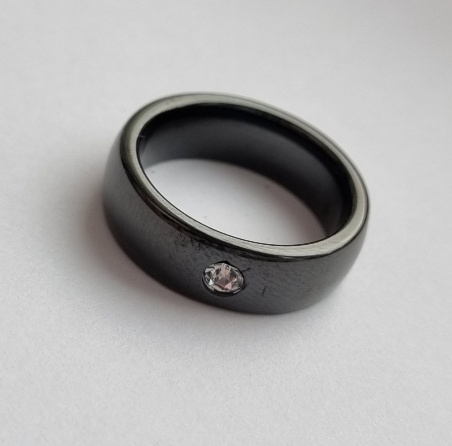 Keramikinis žiedas su cirkonio akutę.