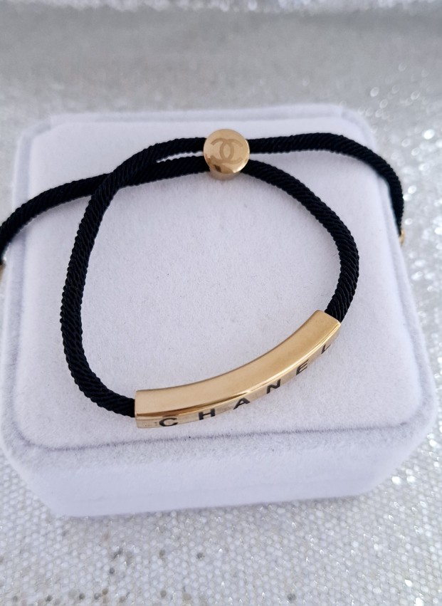 Juodo siūlo apyrankė su paauksotomis detalėmis. Prabangiai atrodanti paauksuota detalė.