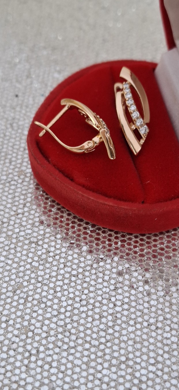 Paauksuoti auskarai su cirkonio akutėmis,  iš medicininio metalo, kurie ilgai išlaiko blizgesį, nealergizuoja, nesioksiduoja.