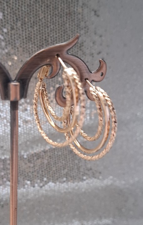 Paauksuoti auskarai rinkutes iš medicininio metalo, kurie ilgai išlaiko blizgesį, nealergizuoja, nesioksiduoja