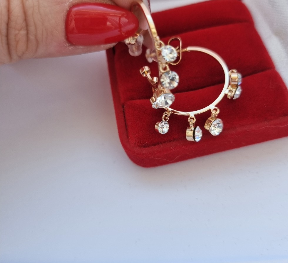 Paauksuoti auskarai rinkutės iš medicininio metalo su cirkoniais