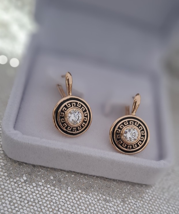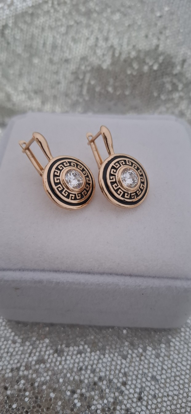 Paauksuoti auskarai iš medicinininio metalo, nealergizuoja ir nesioksiduoja. Auskarai puošti graikiškų raštų, ir cirkonio akutę.