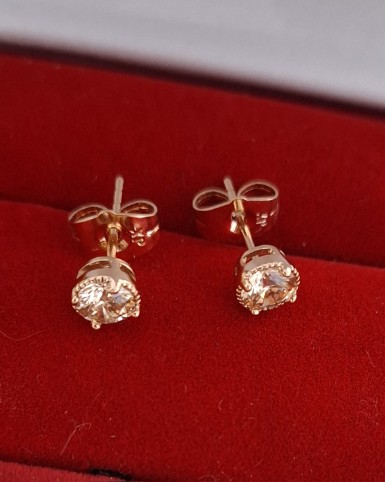 Paauksuoti auskarai iš medicininio metalo, visiškai nealergizuoja ir nesioksiduoja. Cirkonio akutė šampano spalvos.