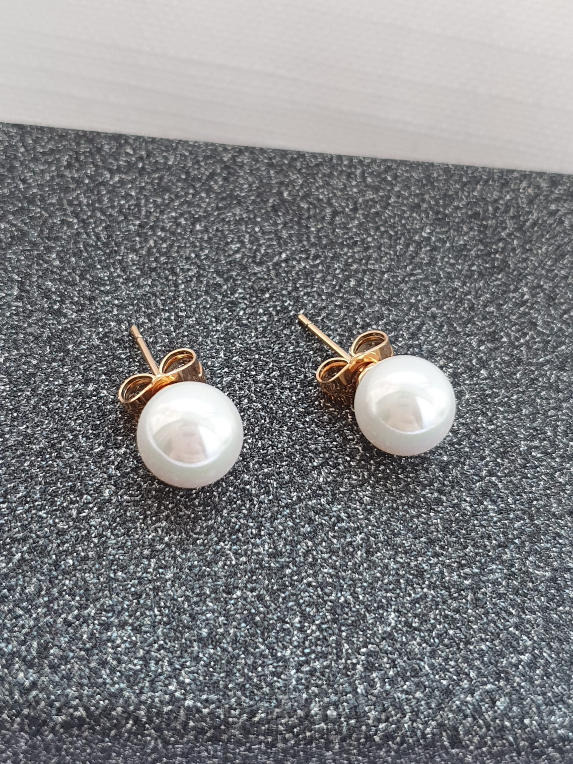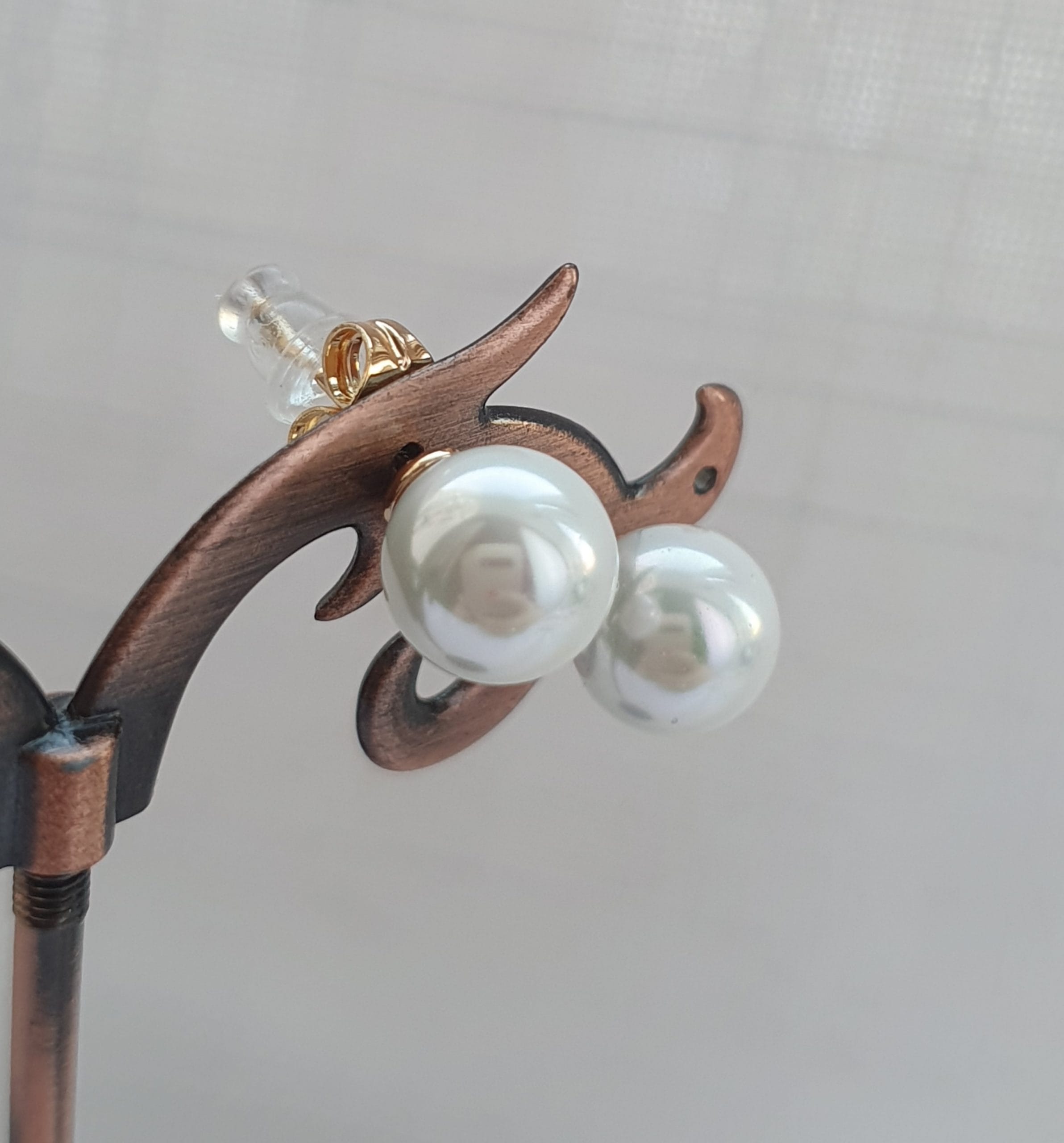 Paauksuoti auskarai vinukai iš medicininio metalo su perlų.