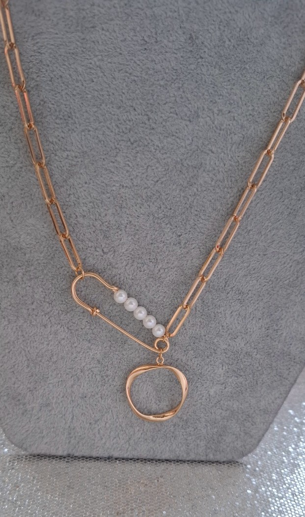 Grandinėlė iš medicininio metalo, paauksuota su perliukais nealergizuoja ir nesioksiduoja, itin ilgas išnešiojimas.