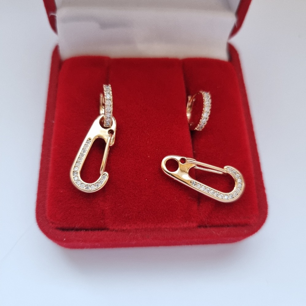 Paauksuoti auskarai iš medicininio metalo nealergizuoja ir nesioksiduoja. Tinka moterims. Auskarus galima nešioti arba kaip mažą rinkutę arba taip kaip pavaizduota.