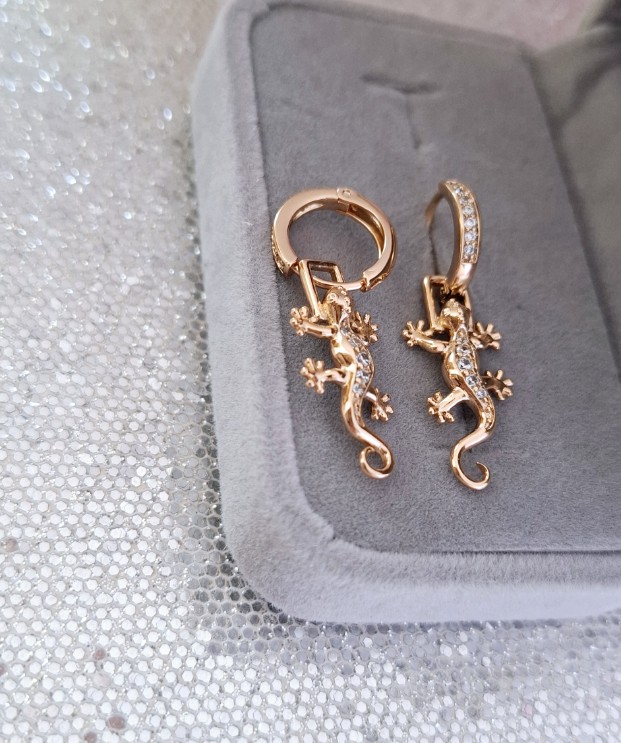Paauksuoti auskarai „Driežiukas” 2 in 1