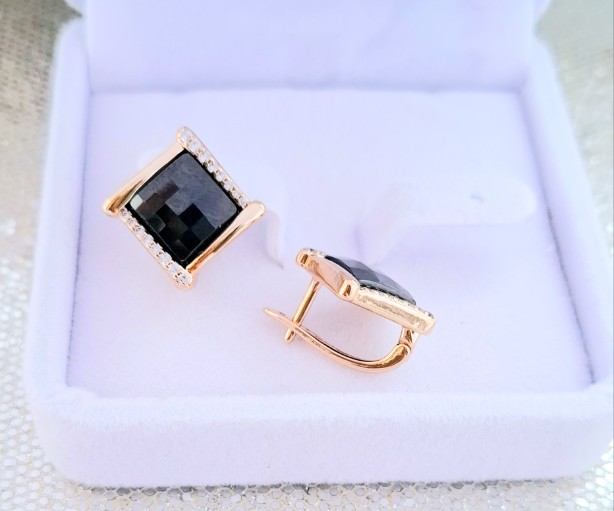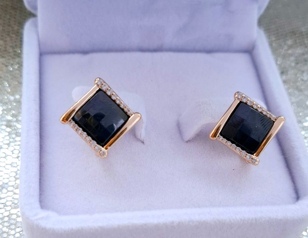 Paauksuoti auskarai „Kvadro” su juodu cirkonių