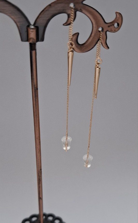 Paauksuoti auskarai iš medicininio metalo, kurie ilgai išlaiko blizgesį, nealergizuoja, nesioksiduoja.