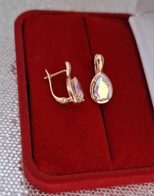 Paauksuoti auskarai iš medicininio metalo su menulio akmenukų.