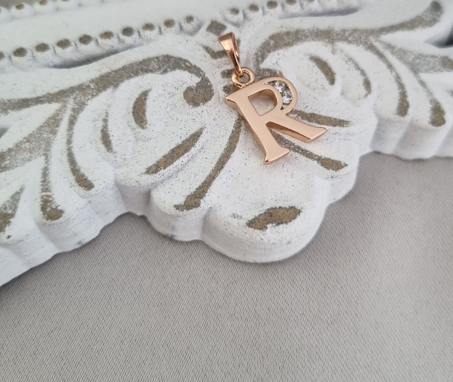 Medicininio metalo paauksuotas pakabukas raidė.