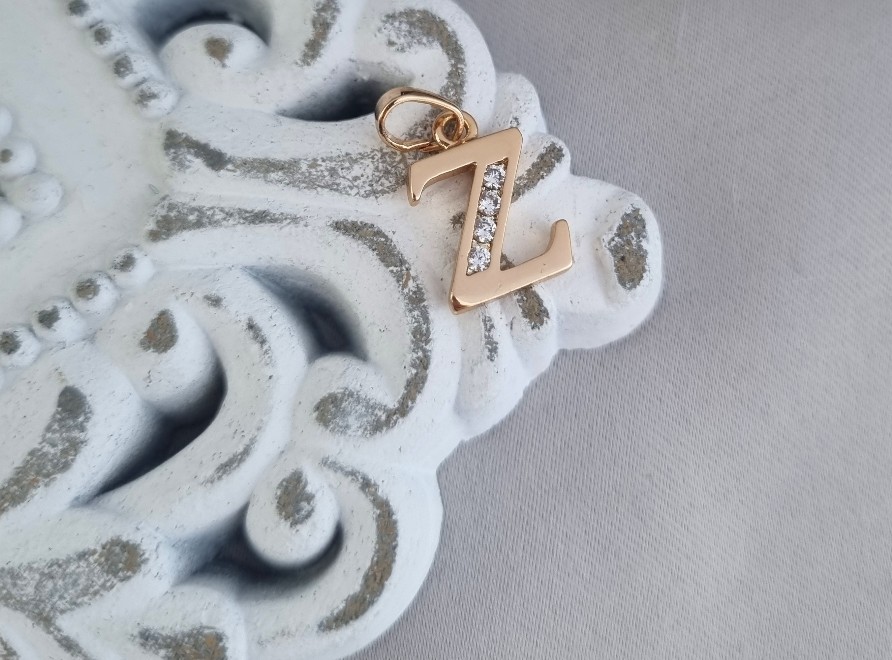 Medicininio metalo paauksuotas pakabukas raidė.