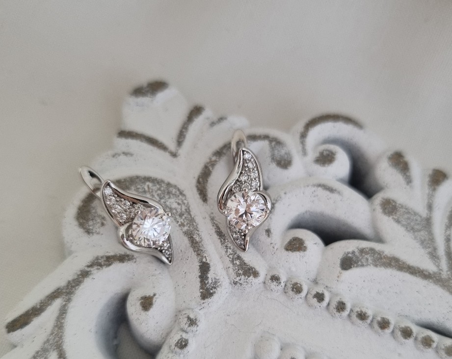 Pasidabruoti auskarai su cirkonio akutę skaidrios spalvos, nealergizuoja, nesioksiduoja.