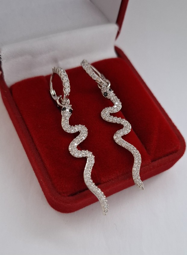 Pasidabruoti auskarai iš medicininio metalo, nealergizuoja ir nesioksiduoja. Inkrustuoti cirkonais, gyvatė 2025 metų simbolis.