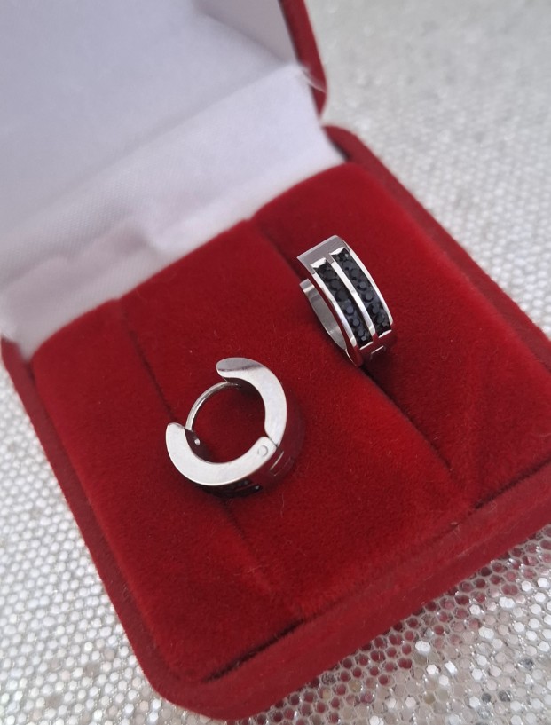 Pasidabruoti auskarai rinkutės su juodais cirkoniais