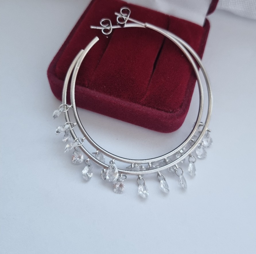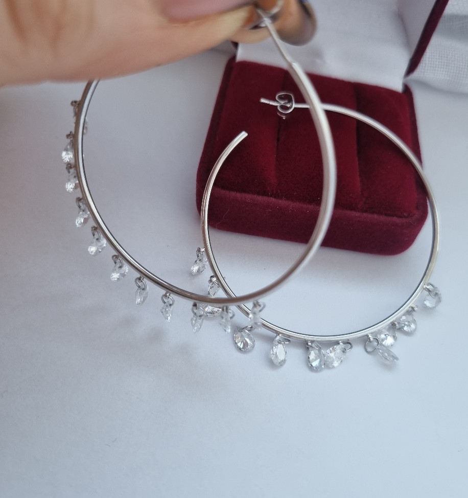 Pasidabruoti auskarai rinkutės iš medicininio metalo su swarovskio kristais