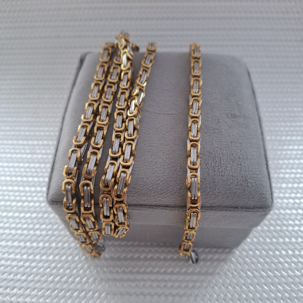 Nerūdijančio plieno grandinėlė ir apyrankė, nealergizuoja ir nesioksiduoja, toks grandinėlės pynimas tinka vyrams .
